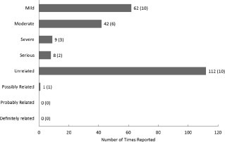 根據(jù)嚴(yán)重程度、嚴(yán)重性和與研究治療的關(guān)系分類(lèi)的AE。共報(bào)告了113起。