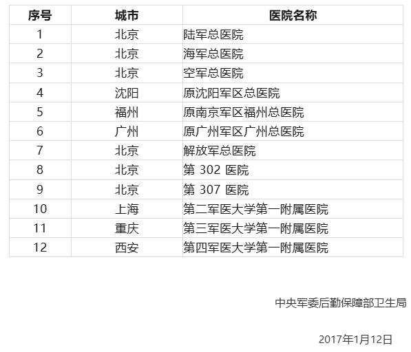 | 6 | 廣州 | 原廣州軍區廣州總醫院 |