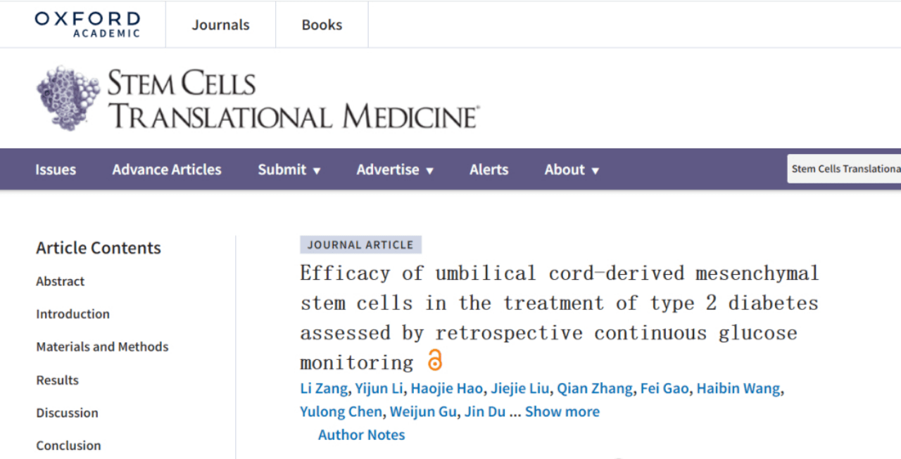 2022年,解放軍總醫(yī)院母義明教授在《STEM CELLS TRANSLATIONAL MEDICINE》上發(fā)表了一篇利用臍帶來源的間充質(zhì)干細(xì)胞(UC-MSCs)治療Ⅱ型糖尿病的療效成果研究報告。
