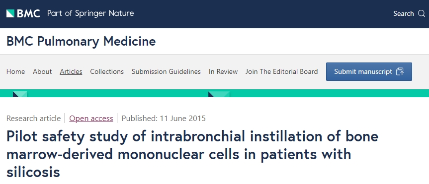 2015年,在一項評估硅肺患者氣管內(nèi)灌注骨髓源性細胞療效的初步研究中,硅肺是一種由接觸二氧化硅引起的纖維化肺部疾病,對五名接受細胞治療的患者進行了為期一年的隨訪。沒有觀察到嚴重的不良反應,一些跡象表明肺灌注有所改善。作者建議可以在更大規(guī)模的試驗中進一步研究這種方法。