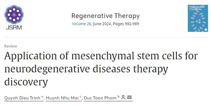 Quynh Dieu Trinh, Huynh Nhu Mai, Duc Toan Pham,Application of mesenchymal stem cells for neurodegenerative diseases therapy discovery,Regenerative Therapy,Volume 26,2024,Pages 981-989,ISSN 2352-3204,https://doi.org/10.1016/j.reth.2024.09.014.