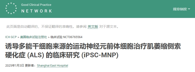 2025年1月,上海東方醫(yī)院開展iPSC來源運動神經(jīng)元前體細胞治療ALS的I期試驗,探索多劑量移植的安全性與神經(jīng)功能保護效果。