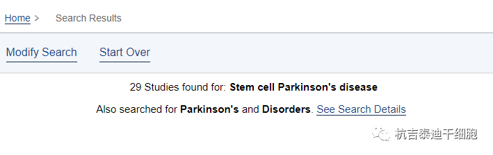 截止2023年4月,在美國(guó)國(guó)立衛(wèi)生研究院的最大臨床試驗(yàn)注冊(cè)庫(kù)clinicaltrials.gov網(wǎng)站上注冊(cè)的有關(guān)干細(xì)胞治療帕金森的臨床研究項(xiàng)目有29項(xiàng)。