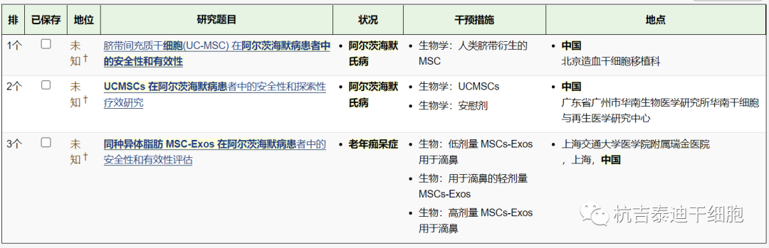 截止2023年4月,在美國(guó)國(guó)立衛(wèi)生研究院的最大臨床試驗(yàn)注冊(cè)庫(kù)clinicaltrials.gov網(wǎng)站上注冊(cè)的有關(guān)干細(xì)胞治療阿爾茨海默病的臨床研究項(xiàng)目有21項(xiàng)。