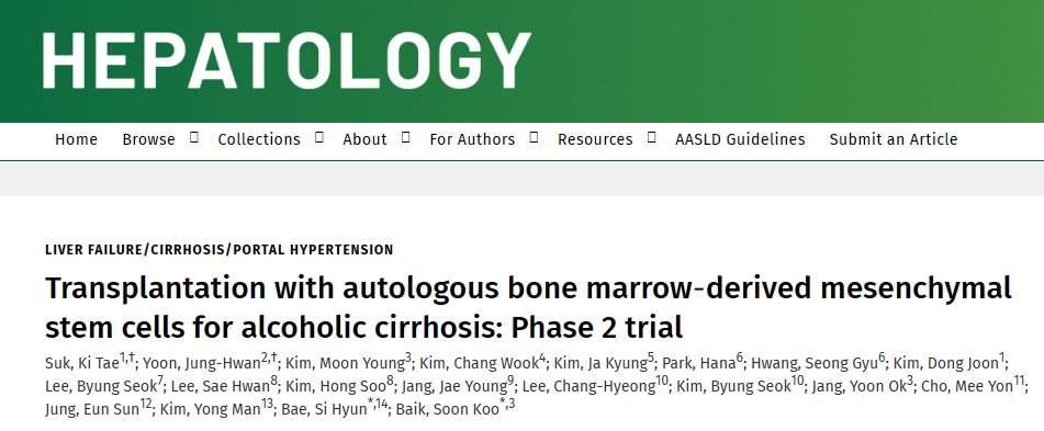 2016年,一項(xiàng)使用骨髓來(lái)源的間充質(zhì)干細(xì)胞移植治療酒精性肝硬化的2期臨床試驗(yàn),結(jié)果表明干細(xì)胞移植可安全地改善酒精性肝硬化患者的纖維化和肝功能,相關(guān)結(jié)果發(fā)表在國(guó)際期刊《Hepatology》上。