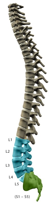 骶骨(骶骨)位于腰椎下方、尾骨上方,稱為尾骨。融合在一起的五塊骨頭組成了三角形的骶骨,這些骨頭編號為S-1至S-5。每個數字對應于脊髓該部分的神經。