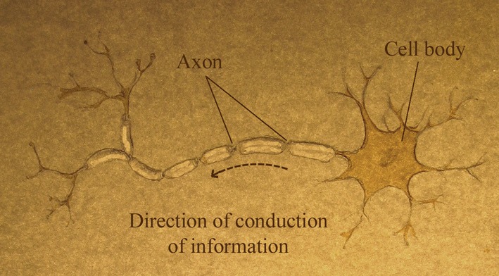 脊髓中發現的主要細胞類型,即神經元,以電信號的形式在脊髓上下傳遞信息。軸突(也稱為神經纖維)是神經元的細長投射物,可將這些信號從神經元細胞體傳導出去每個神經元只有一個軸突,它可以和整個脊髓一樣長,在成年人身上可達45厘米。