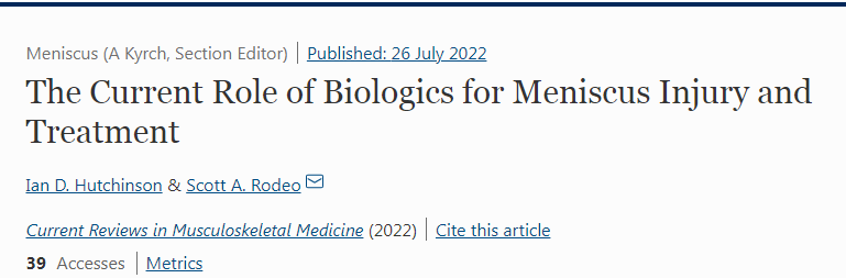 2022年6月,科學家在《Current Reviews in Musculoskeletal Medicine》提出,生物制劑有望提升半月板損傷術后的修復和愈合速度,并且在實驗室研究階段已經取得重大突破。